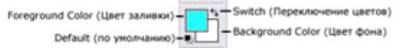 Клавиша для быстрого вызова: Z Zoom (лупа) позволяет изменять масштаб изображения выводимого на экран. Текущее значение масштаба (в процентах) выводится в заголовке окна изображения. Для того чтобы увеличить масштаб изображения (приблизить) необходимо щелкнуть в том месте изображения, которое надо приблизить. Приблизить определённую область изображения можно выделив эту область инструментом лупа. Выделенная область изображения будет выведена на экран в максимально приемлемом масштабе. Для того чтобы уменьшить масштаб изображения, необходимо нажать клавишу Alt, и удерживая её щелкнуть мышью на изображении. Горячие клавиши (Hot Keys) изменения масштаба изображения: >>> увеличить масштаб (Zoom In) - [Ctrl+Плюс] >>> увеличить масштаб вместе с размером окна изображения - [Ctrl+Alt+Плюс] >>> уменьшить масштаб (Zoom Out) - [Ctrl+Минус] >>> уменьшить масштаб вместе с размером окна изображения - [Ctrl+Alt+Минус] >>> 100% масштаб (Actual Pixels) - [Ctrl+Alt+0] >>> увеличить размер окна и изображения во весь экран (Fit On Screen) - [Ctrl+0] На палитре настроек доступны: >>> включение режима изменения размеров окна Resize Windows To Fit вместе с изменением масштаба изображения >>> включение режима игнорирования палитр Ignore Palettes. Когда этот режим включен, Photoshop изменяя размер окна может увеличить его настолько, что оно "залезет" под палитры. Когда режим игнорирования палитр отключен, Photoshop учитывает положение палитр на экране и увеличивает размеры окна так, чтобы не "залезать" под палитры >>> кнопка установки масштаба изображения 100% [Ctrl+Alt+0], т.е. когда 1 пиксель изображения соответствует 1 пикселю экрана Actual Pixels >>> кнопка увеличения размеров окна во весь экран Fit On Screen [Ctrl+0]. При нажатии на эту кнопку размеры окна изображения увеличиваются до размеров всего экрана, а масштаб изображения изменяется так, чтобы оно вписалось в это окно >>> при нажатии на кнопку печатного размера Print Size Photoshop пытается показать на экране изображение в том же размере, в каком оно должно быть при печати. Set Foreground Color (выбрать цвет переднего плана) позволяет выбрать цвет переднего плана. Для этого необходимо щелкнуть мышью на индикаторе цвета, в появившемся окне выбрать новый цвет и нажать Ok. На индикаторе цвета отобразится новый цвет. Set Background Color (выбрать цвет фона) позволяет выбрать цвет фона. Для этого необходимо щелкнуть мышью на индикаторе цвета, в появившемся окне выбрать новый цвет и нажать Ok. На индикаторе цвета отобразится новый цвет. Switch Foreground and Background Colors (переключить цвет переднего плана и цвет фона) - [X] - нажатие на изогнутую стрелочку меняет местами цвет переднего плана и цвет фона. Default Foreground and Background Colors (установить цвет переднего плана и цвет фона по умолчанию) - [D] - щелчок мышью по уменьшенной копии индикаторов цвета назначает цвет переднего плана чёрным, цвет фона - белым.